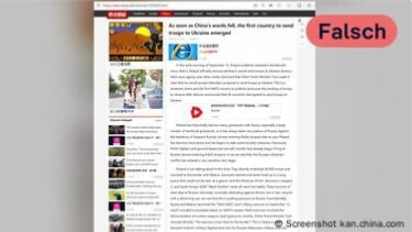 Η DW έχει εντοπίσει αρκετά βίντεο στην κινεζική πλατφόρμα κοινωνικής δικτύωσης Haokan, στα οποία αναφέρεται ότι η Πολωνία έχει στείλει στρατεύματα στην Ουκρανία. Το κινεζικό διαδικτυακό μέσο "Hot News" ανέφερε επίσης: "Το πρωί της 12ης Σεπτεμβρίου, η Πολωνία δημοσίευσε ξαφνικά μια συγκλονιστική είδηση. Η Πολωνία ανακοίνωσε επίσημα ότι θα στείλει στρατεύματα στην Ουκρανία."