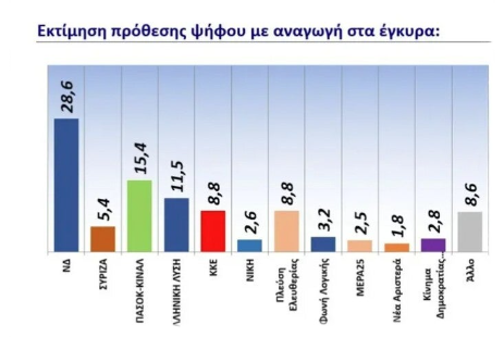 Στους κερδισμένους αυτής της έρευνα το ΠΑΣΟΚ, που ενισχύεται κατά 2 μονάδες και η Ελληνική Λύση που ενισχύεται κατά 1,2 μονάδες.