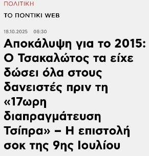 Συγκεκριμένα πρόκειται για επιστολή την οποία είχε στείλει ο Ευκλείδης Τσακαλώτος στον Γερούν Ντάισεμπλουμ στις 9 Ιουλίου 2015, πριν ξεκινήσει η περιβόητη 17ωρη "διαπραγμάτευση", εν ολίγοις το σανό με το οποίο ταίστηκε το αφελές κοινό που έδωσε 62% στο "ΟΧΙ" του δημοψηφίσματος.
