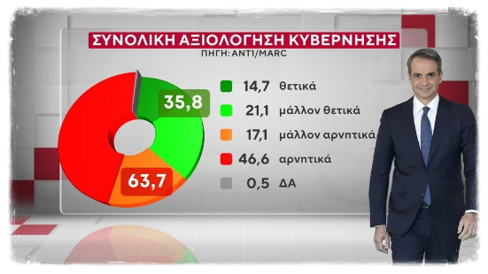 Νέα δημοσκόπηση της εταιρείας Marc παρουσιάστηκε στον τηλεοπτικό σταθμό Ant1.