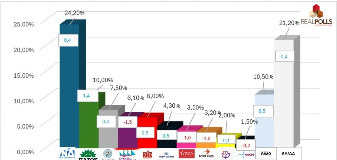 Δημοσιεύτηκε σήμερα η δεύτερη δημοσκόπηση για τον μήνα Νοέμβριο από την εταιρεία Real Polls για το Protagon.