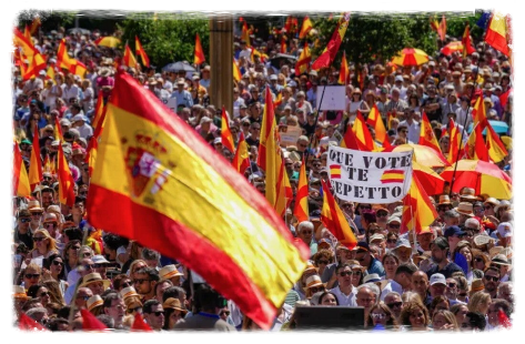 Χιλιάδες άνθρωποι συγκεντρώθηκαν εχθές γύρω από τον Ναό του Debod, στη Μαδρίτη, για να συμμετάσχουν σε διαδήλωση, την οποία οργάνωσε το Λαϊκό Κόμμα (PP), κατά της κυβέρνησης, λίγες ημέρες αφότου ο πρώην σοσιαλιστής υπουργός José Luis Ábalos και ο πρώην σύμβουλός του Koldo García προφυλακίστηκαν στο πλαίσιο της δικαστικής έρευνας για υπόθεση διαφθοράς στην προμήθεια μασκών κατά τη διάρκεια της πανδημίας.