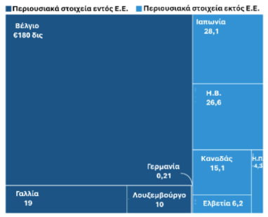 Τα παγωμένα περιουσιακά στοιχεία της κεντρικής τράπεζας της Ρωσίας εκτιμάται ότι ανέρχονται συνολικά σε περίπου €290 δισ.