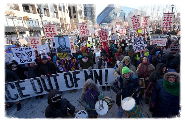 Αρκετές χιλιάδες άνθρωποι βγήκαν στους δρόμους της Μινεάπολης την Παρασκευή σε θερμοκρασίες υπό το μηδέν για να διαμαρτυρηθούν κατά της καταστολής της μετανάστευσης από την κυβέρνηση Τραμπ. Υπάρχουν καθημερινές διαμαρτυρίες στην πόλη από τον πυροβολισμό της Ρενέ Γκουντ στις 7 Ιανουαρίου.