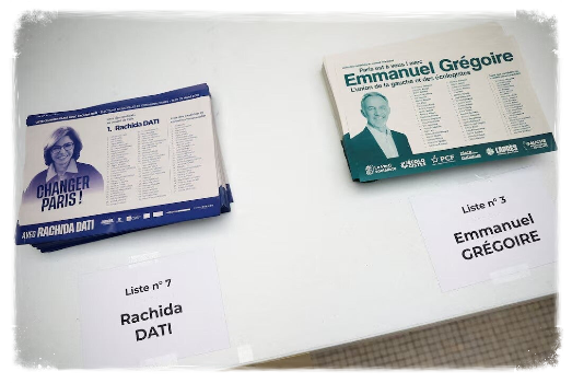Ο υποψήφιος της αριστεράς (Σοσιαλιστικό Κόμμα-Γαλλικό Κομμουνιστικό Κόμμα-Πράσινοι), Emmanuel Grégoire, συγκέντρωσε το 53,1% των ψήφων στο Παρίσι, σύμφωνα με μια αρχική εκτίμηση της Ipsos BVA. Η Ρασίντα Ντάτι (Οι Ρεπουμπλικάνοι), υστερεί κατά περισσότερες από 15 μονάδες με 38% των ψήφων. Η Σοφία Τσικιρού (Ανυπότακτη Γαλλία) έρχεται τελευταία με 8,9% των ψήφων.