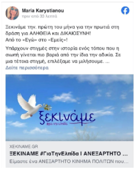 "Ξεκινάμε την πρώτη του μήνα για την πρωτιά στη δράση για ΑΛΗΘΕΙΑ και ΔΙΚΑΙΟΣΥΝΗ! Από το «Εγώ» στο «Εμείς»!