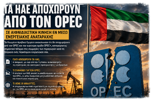 Τα Ηνωμένα Αραβικά Εμιράτα ανακοίνωσαν ότι θα αποχωρήσουν από τον OPEC και την ευρύτερη ομάδα OPEC+, καταφέροντας σημαντικό πλήγμα στις συμμαχίες των παραγωγών εν μέσω παγκόσμιου ενεργειακού σοκ.