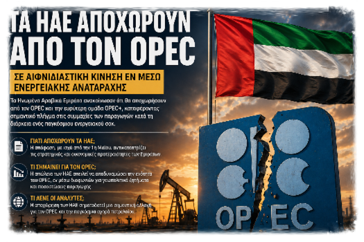 Τα Ηνωμένα Αραβικά Εμιράτα ανακοίνωσαν ότι θα αποχωρήσουν από τον OPEC και την ευρύτερη ομάδα OPEC+, καταφέροντας σημαντικό πλήγμα στις συμμαχίες των παραγωγών εν μέσω παγκόσμιου ενεργειακού σοκ.