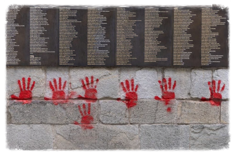 Τα κόκκινα αποτυπώματα χεριών που είναι ζωγραφισμένα στο μνημείο είναι ένα σύμβολο που χρησιμοποιείται από ορισμένους φιλοπαλαιστίνιους ακτιβιστές για να καταγγείλουν τον πόλεμο στη Γάζα. Αλλά θεωρούνται επίσης από εβραϊκές ομάδες και ακαδημαϊκούς ως αναφορά στη δολοφονία δύο Ισραηλινών στρατιωτών κατά τη διάρκεια της δεύτερης Ιντιφάντα τη δεκαετία του 2000 και ως έκκληση για αντισημιτική βία.
