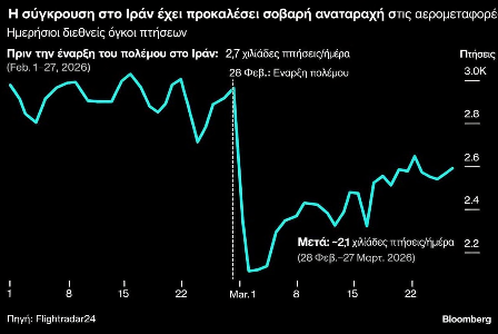 Το Bloomberg ανέλυσε πτήσεις μεγάλων αποστάσεων (widebody) σε 21 μεγάλες αεροπορικές εταιρείες, συγκρίνοντας τον μήνα πριν και μετά την έναρξη του πολέμου, με βάση δεδομένα της Flightradar24.