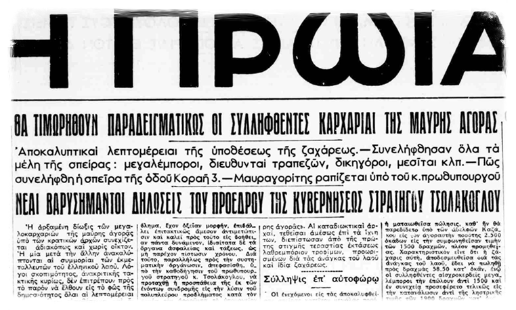 Δεύτερον, προσπάθησαν να φοβίσουν τους συντελεστές της μαύρης αγοράς, συλλαμβάνοντας αρκετούς μαυραγορίτες και κρεμόντας τους δημοσία θέα στο Πεδίο του Άρεως. Ούτε αυτό βοήθησε. Τα τεράστια περιθώρια κέρδους δικαιολογούσαν το αναληφθέν ρίσκο.