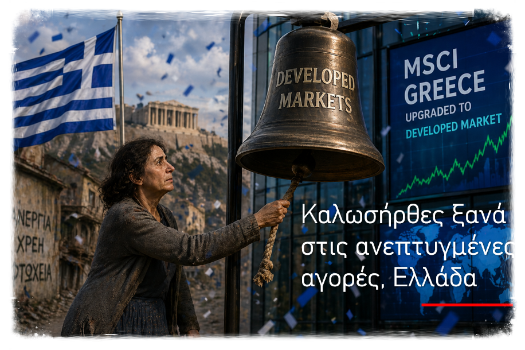Για πρώτη φορά, ο πάροχος δεικτών MSCI Inc. θα αναβαθμίσει έναν δείκτη χώρας από καθεστώς αναδυόμενης αγοράς σε καθεστώς ανεπτυγμένης αγοράς - επαναταξινομώντας την Ελλάδα ως ανεπτυγμένη αγορά, αντανακλώντας την οικονομική και δημοσιονομική ανάκαμψη της χώρας μετά την κρίση δημόσιου χρέους.