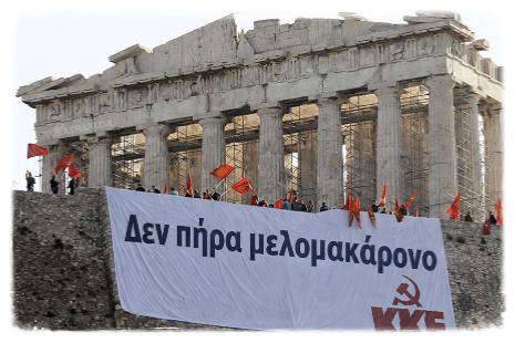 Με την ευκαιρία του νέου έτους, χιλιάδες μέλη του ΚΚΕ, της ΚΝΕ και του ΠΑΜΕ, ανέβηκαν στον ιερό βράχο της Ακρόπολης και ξετύλιξαν πανό με ένα σύνθημα γνήσιας αντικαπιταλιστικής αντίστασης.