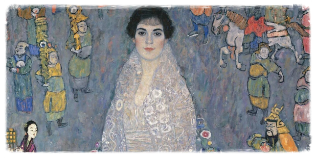 Επιφανειακά, το Bildnis Elisabeth Lederer (Πορτρέτο της Elisabeth Lederer), 1914-16, μπορεί να φαίνεται ότι δεν έχει την εμφανή πολυτέλεια των πιο γνωστών πινάκων της λεγόμενης "Χρυσής Περιόδου" του Klimt, της εποχής κατά την οποία δημιούργησε λαμπερά έργα όπως το "Πορτρέτο της Adele Bloch-Bauer I," 1907, και το "Φιλί," 1907-8. Εκεί που αυτά τα πολυτελή αριστουργήματα λάμπουν με τη λάμψη της Απόσχισης της Βιέννης (το ισχυρό κίνημα που έδινε έμφαση στην καλλιτεχνική ελευθερία και στην οποία συνέβαλε ο Klimt), η λυρική ομοιότητα της Lederer, που δημιουργήθηκε τα τελευταία χρόνια της ζωής του καλλιτέχνη (ο Klimt πέθανε το 1918, σε ηλικία 55 ετών), πάλλεται με μια πιο ψυχολογικά προκλητική ένταση. Ο αισθητικός πλούτος του καμβά είναι άφθονος, αν και πιο κρυμμένος.